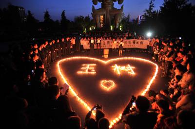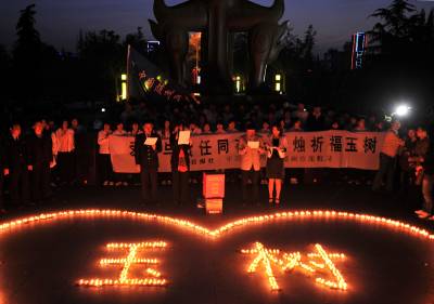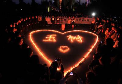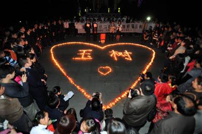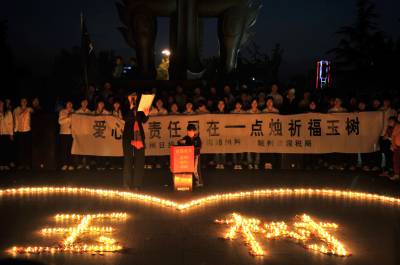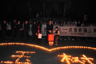 > 随州千名网友聚会点烛祈福玉树