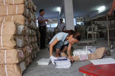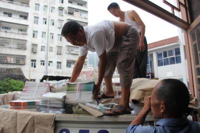 2014年8月28日,宣恩县新华书店仓库内,一派繁忙景象。员工们正在紧张有序地分对、打包、装车、配送全县高、中、小学生的各类教材和教辅读物,确保秋季开学之前把书本及时、准确送达各个学校,做到“课前到书,人手一套”。