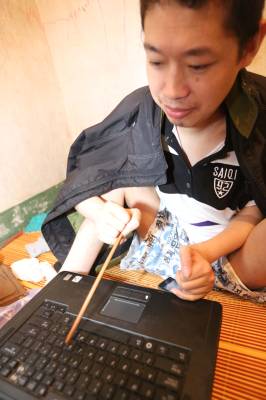 后来,他通过一个好心人送的电脑,上网学习,看一些励志故事,边学边写,顽强地用筷子敲打键盘。特别喜欢在QQ空间里写日志,因为手指不灵活,他就拿着筷子,一个一个地敲字。如今宋存华的QQ空间里,有500多篇日志。大部分是诗歌、小散文,写自己身边的事和一些感想。宋存华的文章描绘了许多他难以企及的梦想。他坚信,只要心存希望,梦想就有希望。