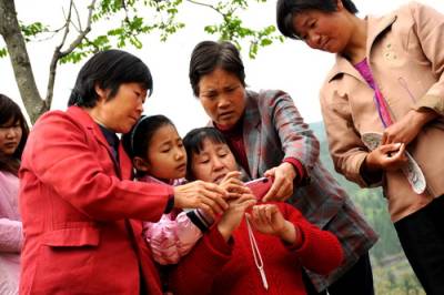 4月24日,湖北省郧县安阳镇龙门塘村七组南水北调即将外迁移民李娟娟正在家门口给爷爷、奶奶、叔叔、阿姨们拍照留影。郧县南水北调外迁移民7176户,30264人。近期,首迁移民57户,262人,已经做好了充分的准备,只要国家一声令下,他们将随时出发.(吴成林)