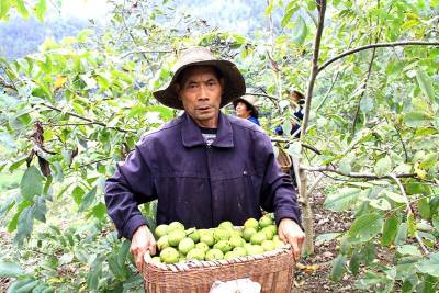 8月29日,竹山县秦古镇张家沟村核桃种植大户高奇能请劳力收获核桃“金果”。据悉,高奇能从2011年开始投资上百万元在涧池村租赁852亩荒地,引进“辽”核、清香、香玲等核桃品种,经过四年的精耕细作、肥水管理、病虫预防等科学管护措施,如今核桃进入收获期,预计核桃干果超过10000斤,实现收入20万元以上。(程平 张志强) 地址:竹山县林业局 电话:13872773800