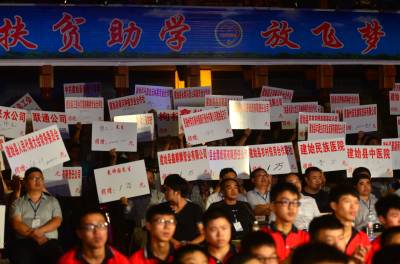 扶贫先扶智,扶智先助学。新学期开学前,全县尚有400多名家庭极度贫困的孩子面临失学,作为湖北省唯一县级扶贫开发协会自觉担当,与山里山外爱心人士广泛联系,8月23日,武汉大学总裁57班山外27名总裁学员冒雨来建始共捐资20.75万元,认领13位资助贫困孩子。当晚公益募捐活动,该县各单位、各部门及社会爱心人士纷纷解囊,现场捐资50余万元,正式建立起县级“资助贫困家庭学生专项资金”,进一步完善贫困学生辍学监测跟踪机制,不断注入爱心资金,确保求学路上,不让一个山里特殊困难家庭孩子落下。本报视界网刘波摄