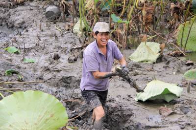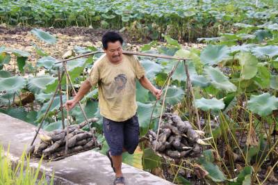 8月30日,竹山县麻家渡镇罗家坡村三组村民正在忙碌着挖藕。近年来,该镇按照“合作社+农户+基地”的经营模式,及时正确引导农民扩大莲藕种植规模,引进“鄂莲7号”等早、中熟品种,在罗家坡、柿树坪等村新建莲藕科技示范园基地近2000亩,农民仅种藕一项户平可增收4000元左右,真正实现了农业增效、农民增收的目标。