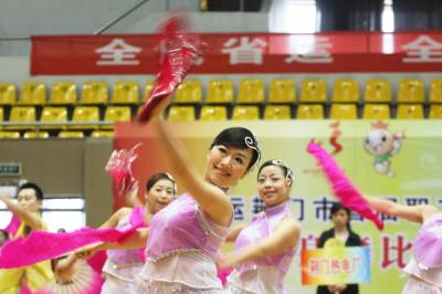 25日上午,迎省运荆门市首届职工文化节健身舞比赛在荆门石化体育馆举行,共8支代表队参加了健身秧歌、巴山舞、健身球等项目的比赛。据了解,这8支代表队都将参加省十三运会群体类项目的比赛。视界网签约摄影师朱运兵摄