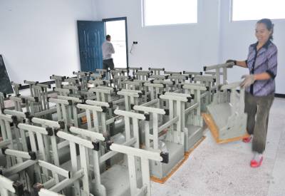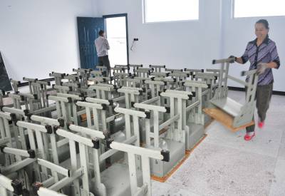 31日,小工正将课桌搬进新教室,确保明日学生正常上课。 去年12月16日,巴东县发生5.1级地震,导致官渡口镇长江小学原教学楼出现大面积裂缝,成了D级危房,上千学生被临时安置在食堂、实验室、教师办公室上课。今年4月,学校多方筹资260万元,新建7度设防,能抗8级地震的教学综合楼。目前,5层1700平方米的大楼已基本竣工,9月1日,首批14个班级700名学生将在新教室上课。(视界网 梁勇 摄)13986846069/巴东县官渡口镇财经所/444309