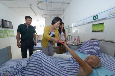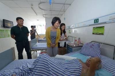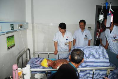 8月29日,保康县委宣传部等部门负责人,来到襄阳市中航工业364医院烧伤科病房,看望孙振福61岁的母亲刘永秀,并送上5000元慰问金,鼓励其家人积极面对生活。