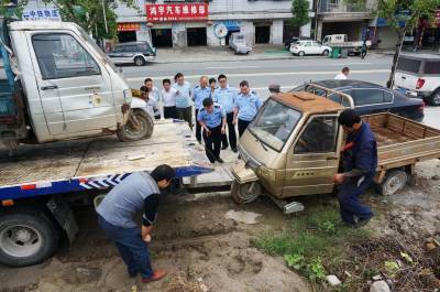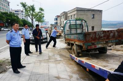 9日2日,郧县公安局交警大队和执法局城管大队联合行动对城区内长年停靠在人行道上的各型破旧僵尸车进行最后清理,对通知整改不落实的业主车辆进行整体清场,仅一上午就拖走各型僵尸车21辆,打通了人行道恢复了往日的市容市貌。 视界网周家山 王贤军摄