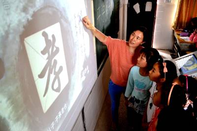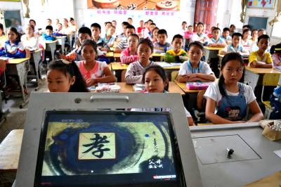 (通讯员 杨显有) 9月2日,湖北省郧县柳陂镇中心小学学生正在搜看央视“开学第一课”,结合老师的讲解,再次感受“孝礼爱”的洗礼,扣好人生第一颗纽扣。
