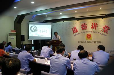 8月26日,武穴市工商局“工商道德讲堂”正式开讲。活动围绕“诚信”主题,按照“唱一首歌曲、看一部短片、讲一个故事、宣讲一段先进事迹、诵一段经典、谈一番感悟、提一点希望、作一次点评”八个环节,让全系统干部进一步认识中华道德传统的源远流长和传承道德风尚的重要意义,深刻理解精神文明建设的深刻内涵,从而自觉成为道德的传播者、践行者和先行者。 郭培高 吴晓敏 摄影报道