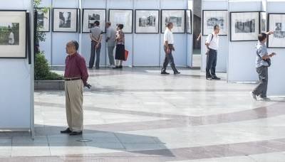 9月3日,市民正在恩施市硒都广场观看恩施抗战文化图片展。抗战时期,武汉、宜昌相继沦陷后,湖北省省会及第六战区司令部西迁至恩施,图片展向人们展示了属于那段烽火岁月的大量珍贵历史资料。