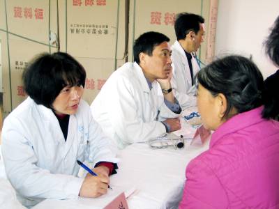 4月22日,京山县人民医院医护人员正在为罗店镇吕家村村民进行义诊。该院开春以来多次深入结对帮扶对象吕家村了解情况,并积极为村民捐款捐物,目前,共为该村提供扶助资金2.544万元。当日,该院共义诊询约300人次,免费B超检查80人次,免费测血压110人次,免费妇检45人次,还为每四家贫困户户送去了500元慰问金。通讯员李凯周剑摄