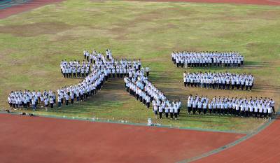 2014年9月3日,湖北省武汉市,湖北经济学院新生利用军训间隙,组成“九三”字样,以纪念中国人民抗日战争和世界反法西斯战争胜利69周年。