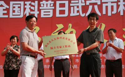 武穴 新增两家院士专家工作站 9月4日,在“全国科普日”武穴市科普宣传月启动仪式上,湖北省科协副主席徐菊明(右)代表省科协向武穴市的两家企业---湖北美天生物科技有限公司、湖北富之源生物科技有限公司授予“院士专家工作站”铜牌,至此,武穴市继湖北祥云股份有限公司和武穴市农业科技中心之后,又新增了两家院士专家工作站。本报视界网冯怡红摄(13707253878)