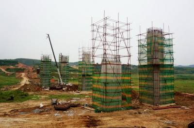 9月4日,郧县至杨溪铺镇刘湾村"郧十"高速公路相联的郧府大道青凉寺大挢互通的正在紧张施工。青凉寺大桥共14架,全长560米,宽24米,双向四车道,是郧府大道的主要桥梁,郧府大道全长11.1公里,宽30米,设计时速60公里,总投资5.37亿元。于4月开工建设,2015年4月建成通车。该大道西起郧县城区双庆桥,东至杨溪铺镇罗沟村四组,与郧十高速公路郧县北囗互通相联。 视界网周家山 摄