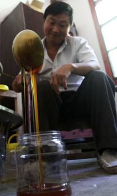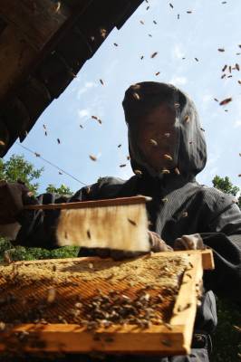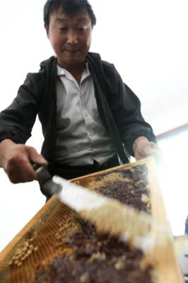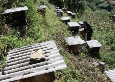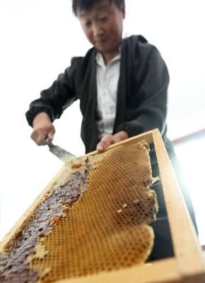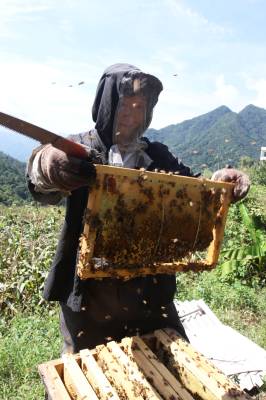 “甜蜜”的丰收 9月4日,竹溪县鄂坪乡九湾村柏自友查看蜂箱。养土蜜蜂收蜂蜜已有近10年的柏自友,因其收取的蜂蜜原生态,品质好,顾客上门购买,蜜蜂供不应求,今年扩大规模,发展蜜蜂养殖近300箱,年收入近6万元,同时成立自友土蜂专业养殖合作社,带领村民发展养殖蜜蜂致富。