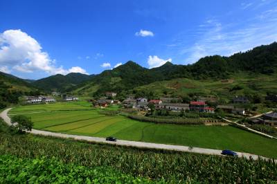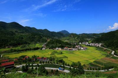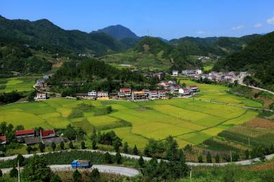 稻浪映村路 9月6日,竹山县得胜镇金明村,通村水泥路蜿蜒在村庄、稻田间,美丽如画。金秋时节,竹山县高产农作物进入成熟期,农村处处呈现出迷人的丰收景象。(视界网 章磊 摄)