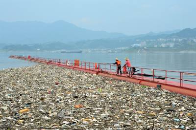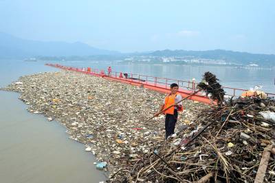 据该实验项目负责人、高级工程师蔡莹介绍,“拦漂、导漂、清漂”水力一体综合治漂浮排新装置的原理是依靠浮排拦截从上游冲刷下来的漂浮物,利用自身的水力和河流水力将漂浮物导向浮排内侧,再由清漂工人和船舶打捞上岸,进行集中处理。该新装置不仅改变了传统的单一清漂方式,降低了清漂成本,提高了清漂效率,同时解决了清漂治漂世界难题。(视界网 王家满)
