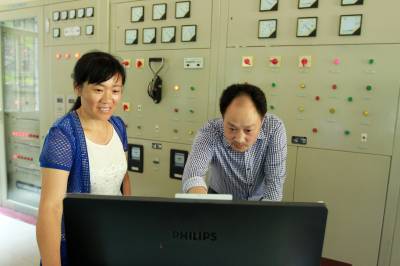 9月6日,房县水电产业办副主任齐德平(右)在指导仙家坪电站自动化操作。该县采取送股权、卖产权、放水权等措施,招商引资开发清洁环保能源小水电。目前,完成吸引浙江、福建、武汉等县内外客商投资20亿元,累计开发电站96座,装机容量达20.1万千瓦,年均实现发电量4.56亿千瓦时。还有范家垭、湖溪、百步梯等8座装机6.1万千瓦电站,正在加快建设进度。通过吸纳民资,全县开发电站装机容量超过前30年总量的88%,年新增财税收入提高8倍。