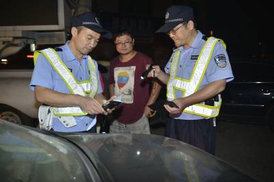 图二、三,民警手持警务通,即时查询机动车辆信息,提高实战水平和快速反应能力;