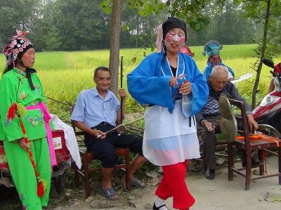 9月7日,汉川市杨林沟镇谷家村、细鱼村两个村的一些爱好唱戏的老年人自发组成联村戏曲演唱会迎庆中秋,他们把戏曲舞台搬到田间地头为乡亲们唱戏,让村里的老年人听戏过中秋。(本报视界网 孙文平 摄) 通联:431625汉川市西江宣传办公室 孙文平 15172226580