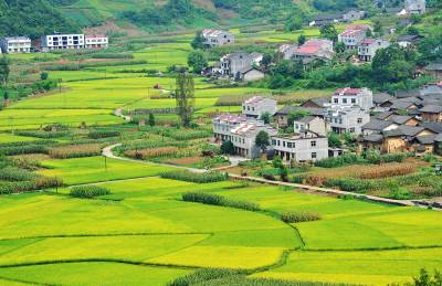 中秋节时,竹山县得胜镇花竹溪稻田已在泛黄,弯弯的田间公路与农家院落交相辉印,构成一幅美丽的乡村画卷。
