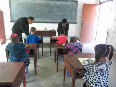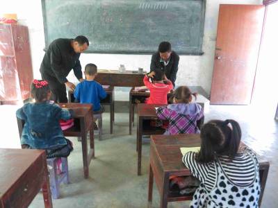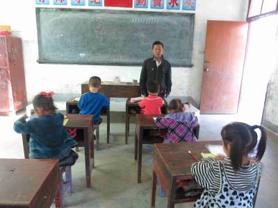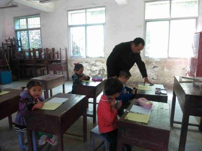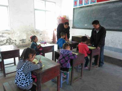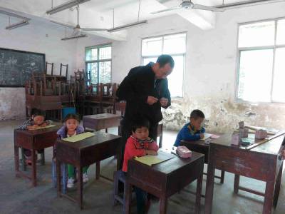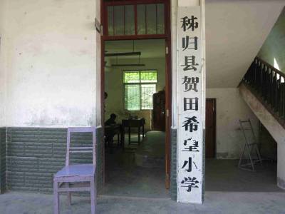 秭归县梅家河乡海拔800米的贺田希望小学目前5个学生由两位58岁的谭贤界、向宗坤坚守。向宗坤家离学校5公里,双休回家。谭贤界老师家在县城,但为了学生常年驻扎高山之巅。他说虽然孤单,但为了高山上的孩子必须坚守。据了解该校曾经办过高中,高峰期曾经有1500多名学生在此就读。 摄影:秭归县实验小学傅瑞年 梅家河中学 陈华报道