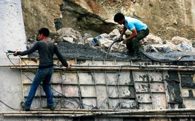 2014年9月8日,今日是中秋节日,谷竹高速施工人员施弃中秋节小长假和家人团聚,坚守工地加速推进谷竹高速收尾施工。 当日,谷竹高速竹溪段施工人员正在抢抓晴天浇筑谷竹高速竹溪段最后施工的护坡挡墙(视界网温大树摄)
