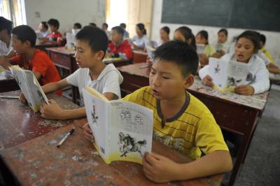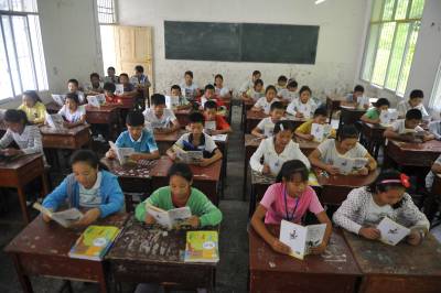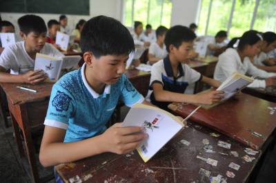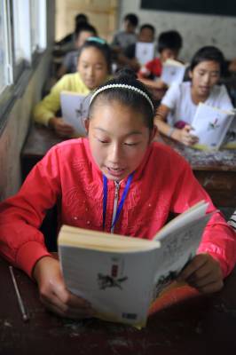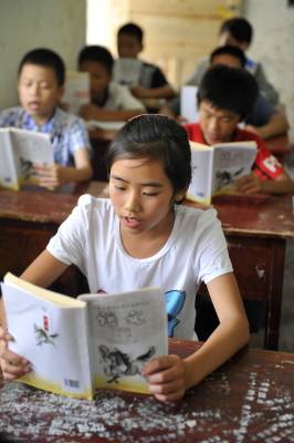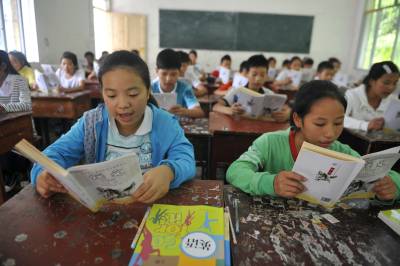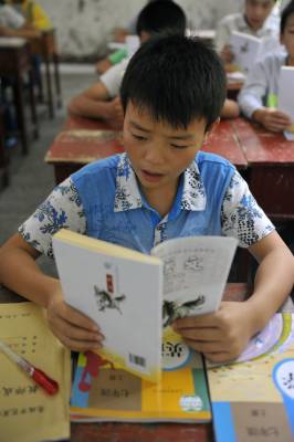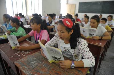 9月9日,在湖北省恩施市芭蕉侗族乡黄泥塘民族中学,七年级学生在语文课上朗读第一课《散步》。