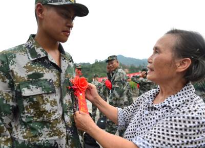 9月9日,建始县首批新兵启程现场,70岁徐明菊老太婆为侄孙子何振兴戴光荣入伍大红花,再三叮嘱到部队后好好听话,练就过硬本领,为家乡争光。他表示一定牢记祖辈嘱托,到部队后听领导的话,安心服役,磨砺成才,以自己时间行动为祖国争光。为部队争光,为家乡争光,为亲人争光,交上一份合格军人答卷。本报视界网刘波摄 建始县新闻中心刘波联系电话13032794298
