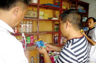 9月9日,食药所的工作人员正在对巴东县官渡口小学的小卖部的商品进行逐一检查。