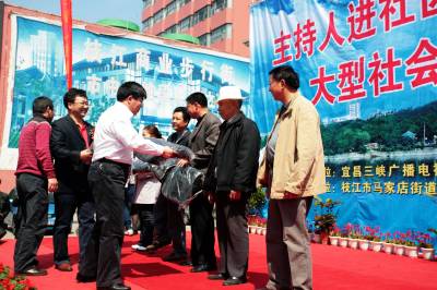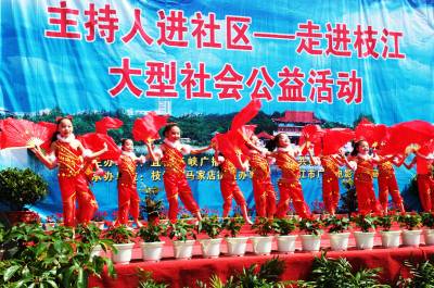 主持人进社区受欢迎4月23日,小朋友正在枝江礼堂广场表演舞蹈。当日,宜昌广播电视总台、枝江市委宣传部联合主办了主持人进社区——走进枝江大型社会公益活动。宜昌广播电视总台、枝江市广播电视台的主持人登台献艺,拉近了与观众、听众的距离;马家店街道办事处、民政部门为困难户送温暖,体现了民生情怀;企业送岗位,为市民办实事;现场有奖问答,在欢乐祥和的气氛中宣传了党的惠民利民政策;有关职能部门摆台咨询,为市民释疑解惑,深受欢迎。刘卫东摄