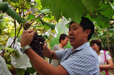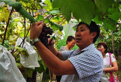 > 西溪坝葡萄采摘园里采葡萄 畅享田园乐趣 (图)