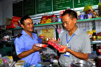校园安全“无缝对接” 9月10日,在恩施市红土乡乌鸦坝村一家小卖部,工商、食药所工作人员正在察看货架食品。 连日来,该乡组织 安办、派出所、工商所、食药所、卫生院、中心学校等单位联合工作专班,对辖区内各中小学校、幼儿园的安保措施、消防安全、食品安全、公共卫生安全等内容开展大检查,全面排查校园内外部安全隐患。对于各校不符合要求的地方要求立即整改,并下达整改通知书,限期整改后进行复检,确保校园安全“无缝对接”。(视界网彭绍峰摄)