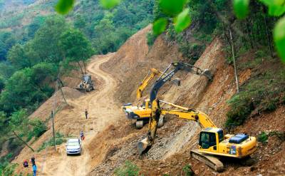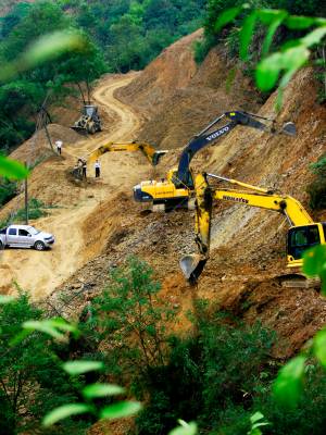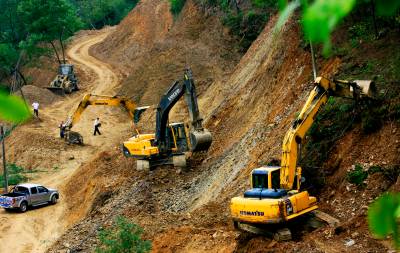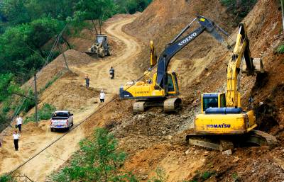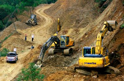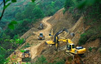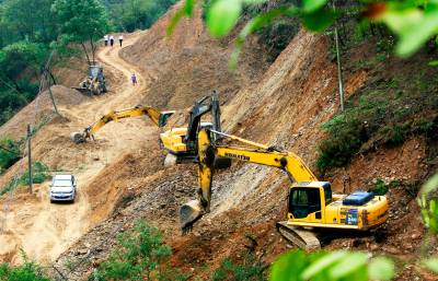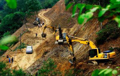 2014年9月11日,346国道——湖北十堰竹溪段改扩建施工人员正在还建因改扩建国道占用接国的村道路头。