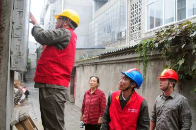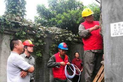 9月11日,国网老河口市供电公司共产党员服务队的队员们来到汉口路社区杨营一组,为五保户王城强提供免费用电服务。连日来,该公司组织人员深入社区走访,与社区干部群众积极沟通,及时掌握辖区群众用电状况,特别是留守老人、低保户、五保户等弱势群体,制定了帮扶计划表,分期、分批地上门提供免费用电服务。图为共产党员服务队的队员在为五保户王城强免费安装电表,敷设低压用电线路。