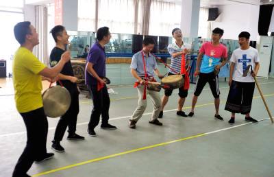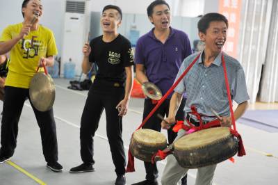 9月12日,青年演员在学习非遗项目“薅草锣鼓”。