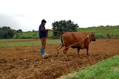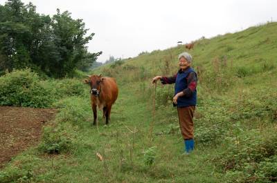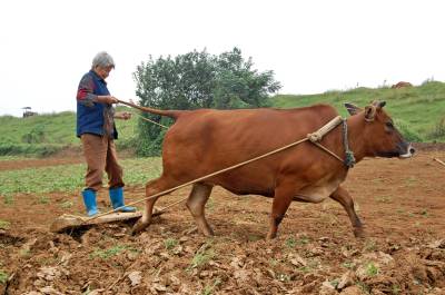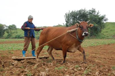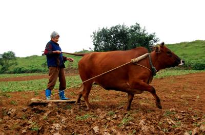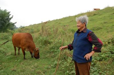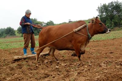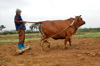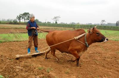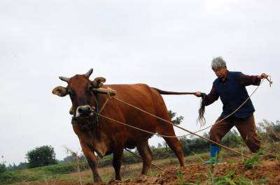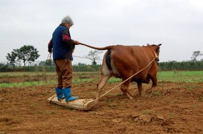 2014年9月13日,云梦县城关白鹤村年过八旬的方老太赶着耕牛,拉着牛尾巴,双脚站在不断移动的“抹板”上,在田间轻松而开心劳动。老人年过八旬,身体硬朗,儿孙满堂,四世同堂,衣食无忧。老人说,现在不愁吃,不愁喝,政府还给老人补贴。现在身体还好,下地劳动图个乐!老人还介绍说,她老伴83岁了,儿孙们个个孝顺,心情舒畅,自己也喜欢到田间走走看看,劳动劳动。如今种地多是拖拉机等机械,这块地周边人家已经安苗种了庄稼,拖拉机进不来,就用耕牛耕地、耙地、抹板,自己帮忙儿孙们做点事,对身体也好,自己也开心。本报视界网 陈保忠 摄