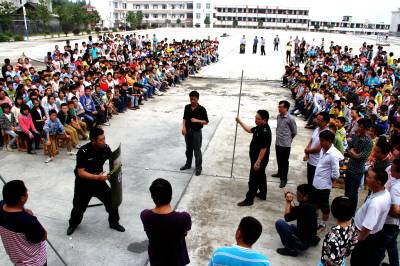 9月12日,在恩施市红土乡民族中学操场上,600多名师生正在参加“校园反恐防暴”应急处置演练。