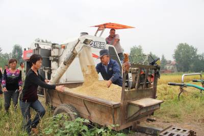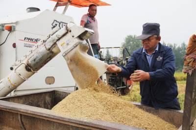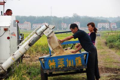 安陆以打造“现代农业强市”为目标,大力推进农田改造,让农民实现“机耕、机收”梦。图为9月14日,该市雷公镇王台村农民直接把拖拉机开到田中央,轻松收稻谷。