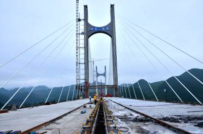 9月14日,恩来高速公路全线控制性工程——忠建河特大桥进行桥面铺设,为10月30日完工做最后冲刺。
