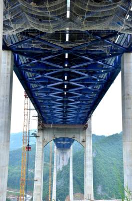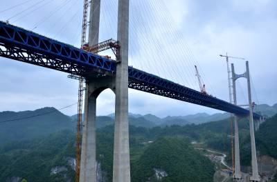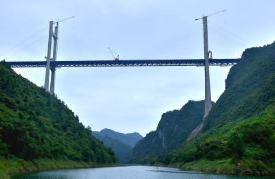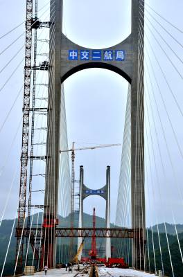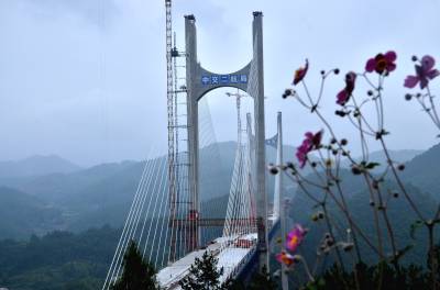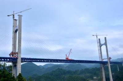 忠建河特大桥位于湖北省恩施土家族苗族自治州宣恩县晓关侗族乡,是恩来恩黔高速公路中最大一座桥梁。大桥全长1063米,为双塔双索面钢桁加劲梁斜拉桥,主跨400米,是目前国内公路同类型桥梁中最大跨度桥。