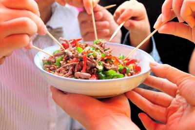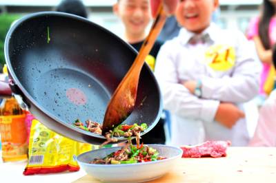 2014年9月13日,宜昌市夷陵区一家生态畜牧专业合作社将山里黑猪展台摆到城区街头,通过现场展示黑猪产品和炒制瘦肉丝等形式,吸引不少市民零距离体验和感受原生态的农家“舌尖美味”,让城市街头弥漫阵阵诱人的清香。视界网 张国荣 摄