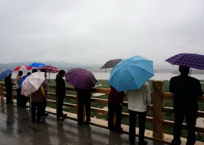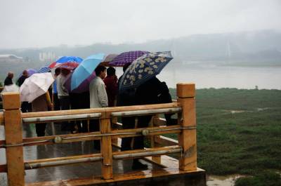 9月16日,湖北省郧县许多市民冒着雨打着伞来到汉江边观看汉江长水,这是市民连日来观看汉江两岸最后的草地和原始地貌,此次长水后将向北京调水,今后将在也看不到汉江两岸最后的草地和原始地貌,当日水位线为151米,这是去秋至今秋干旱一年来汉江首次长水,惹得水源区郧县许多市民不断来看江水长势,留下最后的江滩记忆,向江滩道别。 视界网周家山 摄