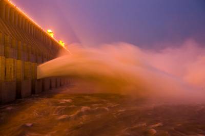 9月16日晩,三峡大坝的泄洪场景。受长江上游强降雨影响,今日三峡水库入库流量为36500立方米每秒,出库流量为33200立方米每秒,三峡水库水位达到166.27米。按照国家防汛抗旱总指挥部批复要求,自9月15日凌晨起,长江三峡枢纽工程正式启动新一轮175米试验性蓄水。预计10月底或11月份,三峡工程将蓄至175米水位。