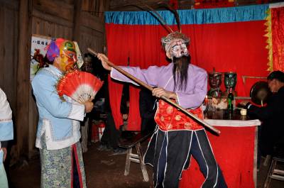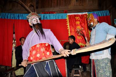 大山里的古老文化—傩戏4月26日,笔者在恩施市红土乡红土溪村朱家岭组看到,该乡漆树坪村傩戏团正在举行"还傩愿"的祭祀仪式。当地300多名群众观赏了一台古老的戏曲艺术文化。据悉,傩戏是一种从原始傩祭活动中蜕变脱胎出来的戏剧形式,是宗教文化与戏剧文化相结合的孪生子,积淀了各个历史时期的宗教文化和民间艺术。这种戏曲艺术形式,表现当地老百姓对美好生活和家人平安的殷切期盼和良好祝愿。被誉为”中国戏曲活化石”的傩戏,在当地己流传了300多年。图1、2、传统的民间民俗文化融入了许多现代色彩。图3、参与的观众喜笑颜开。图4、为了保护古老的祭祀文化活动,许多年轻人也参与其中传承。图5、6、观众用手机记录拍照。采访手记:经过漫长的历史发展,傩戏已成为一个颇有特色的地方戏曲剧种,初始时期那种宗教色彩已逐渐淡薄,"娱神"已成虚,"娱人"才是实。然而,如何既保持剧种特色,又摆脱昔日宗教和迷信的阴影,却仍需不倦的探索和实践。设若剔除了其中的迷信糟粕,余下的则是几千年的文化积淀,至今仍闪耀着璀璨的光芒。(视界网彭绍峰摄)红土乡政府13329820218