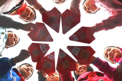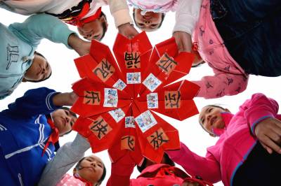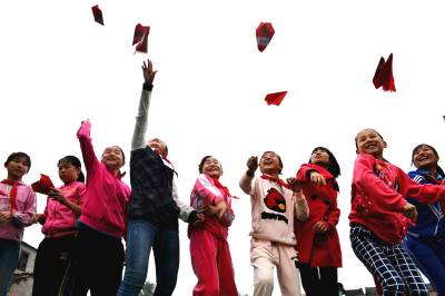 快乐亚运 快乐祝福 (图1-3): 9月17日,小学生用纸飞机拼出“放飞快乐 祝福亚运”字样。 (图4-6): 9月17日,小学生放飞祝福亚运纸飞机。 第17届亚运会要开始了,当日,湖北省郧县柳陂镇中心小学六(2)班学生相聚一起,通过用红纸折叠各式各样的纸飞机,写上亚运心愿、贴亚运吉祥物,并向空中放飞,以表达对亚运的祝福和对竞技体育的热爱。 (供稿:湖北省郧县柳陂镇中心小学 杨显有 轩荣 13277199605 442532)