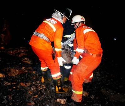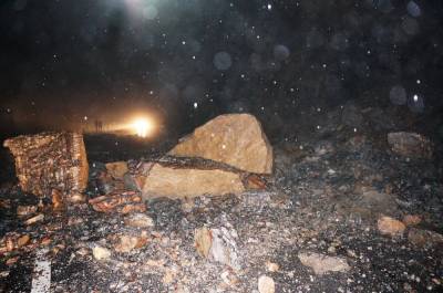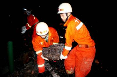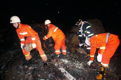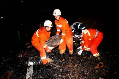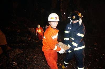 9月17日夜21点10分,郧县公安消防大队接到报警,通往大柳乡和陕西省的公路最陡峭的山路,海拔800多米的葫芦包岩的盘山路上段发生滑坡车辆被堵,消防大队迅速出动3辆车和官兵立即出发,在大雨和大雾中向事发地出发,20分钟赶到事发地,经侦查建路时北坡被削减的垂直山体有15米高,连续一个多星期的降雨使山体部分滑坡,塌下来的乱石堵在公路上有50多米宽,为让堵在山上的车辆安全离开此地消防官兵开始人工搬石清理现场,可是由于雨大雾大,山上不时滚下小石块,为保障官兵人身安全决定撤离封路,天亮后由公路部门出动机械清理5--6吨重的大块石头,以便打通道路。