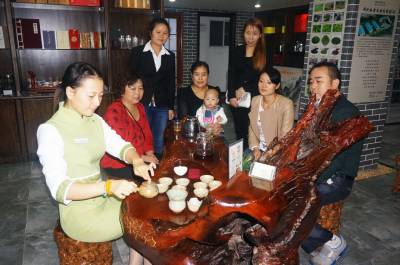 9月18日,郧县诚者茶业揭牌,这是郧县笫一家以茶业种植、管理、采摘、加工、销售、茶艺展示为一体的茶叶合作社开张的笫一家茶馆。该茶馆是由湖北诚者茶业有艰公司经营,该公司拥有18家茶叶分场,茶园面积6万多亩,年产茶叶100余吨,创产值6500万元,实现年销售收入3500万元,带动3000余户12000余村民脱贫致富,该公司出产的茶业产品连续两次获全国农博会金奖。 视界网周家山摄