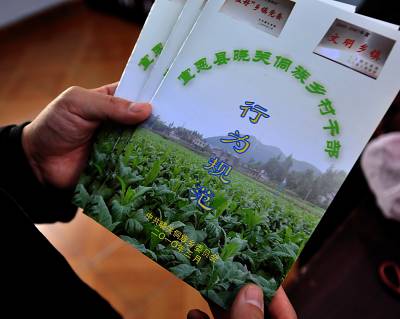 27日,宣恩县晓关侗族乡政府干部把一本《乡村干部行为规范》送到宋家沟村女村干部手中。为让村干部的言行有行事准则,努力在新农村建设中发挥引导、带头作用,该乡在广泛征求民意的基础上,第一次用文本形式规定了包括村干部”十不准”、村干部待遇考核等制度,并组织了集中学习。(视界网签约摄影师:宋文、熊茂平摄)