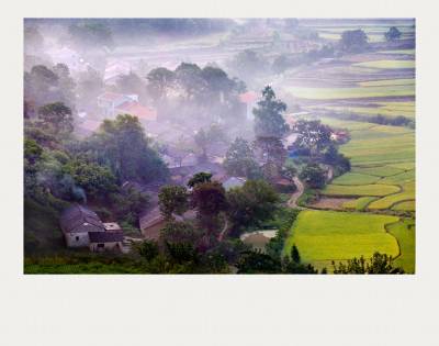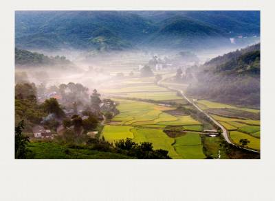 秋晨的大悟山村,沐浴阳光,稻花飘香,彩霞说:幸福的稻香村,我来了!